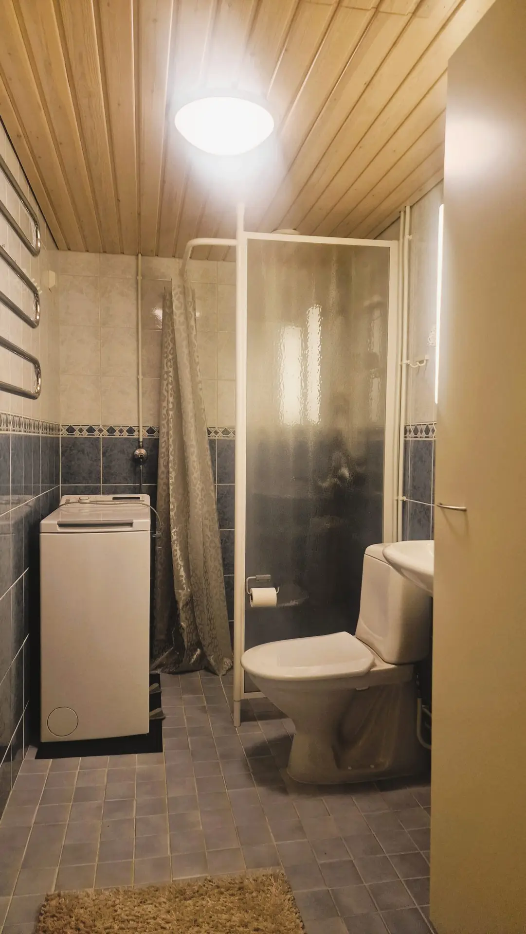 - Tyylikäs kylpyhuone: suihkukaappi, whirlpool-pesukone, bidesuihku
